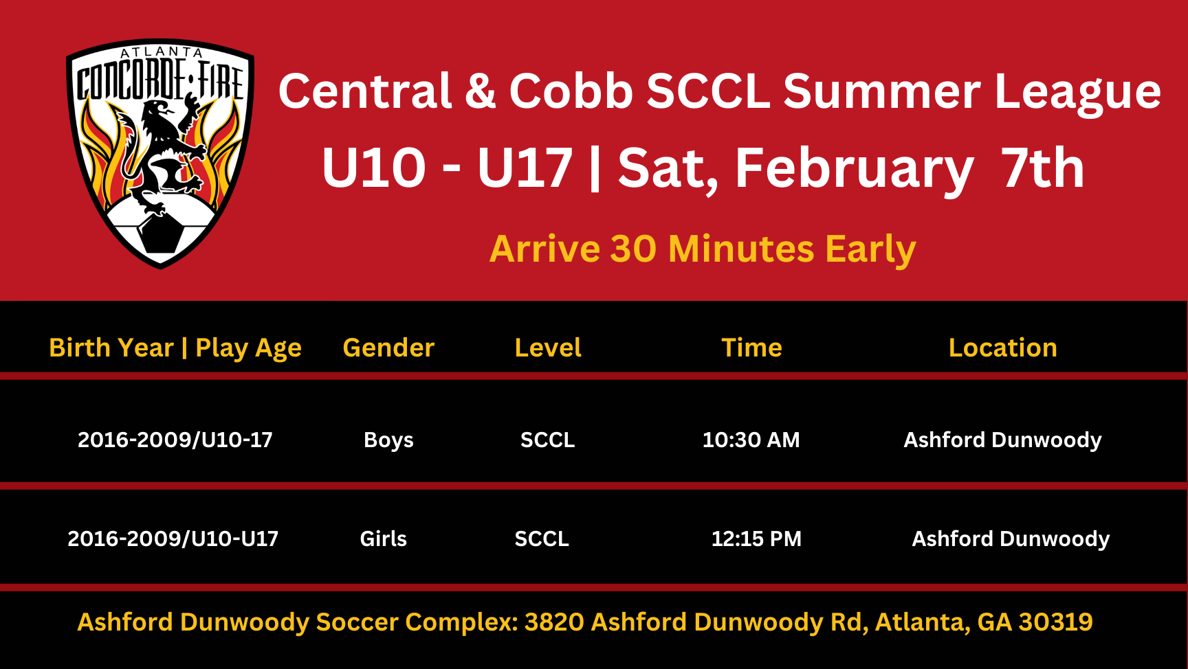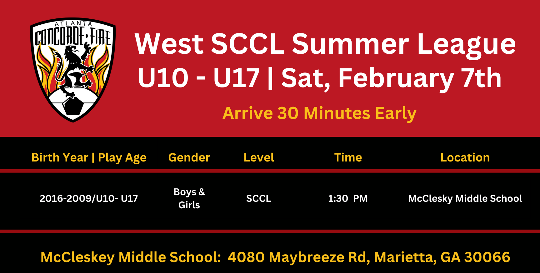 Concorde Fire SCCL Summer League (U10-U17)